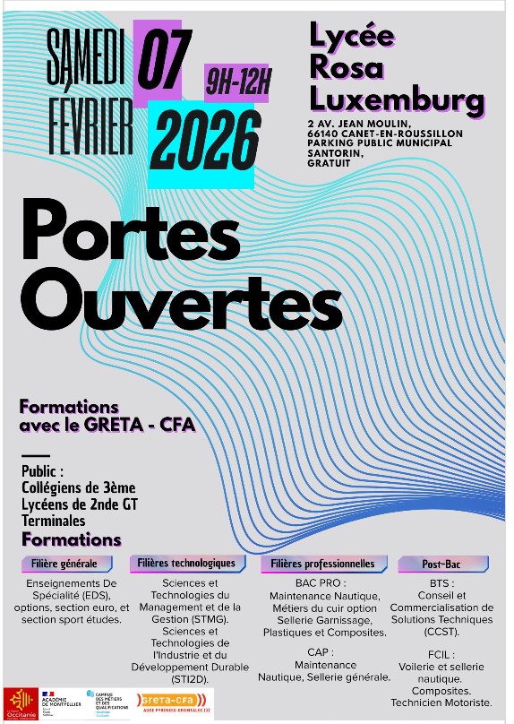 La Journée Portes Ouvertes du lycée Rosa Luxemburg aura lieu le samedi 7 février 2026 de 9 h à 12h.